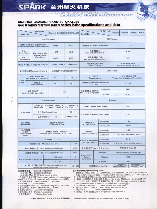 CKA6163 CKA6180 CKA6263 CKA6280系列变频数控车床