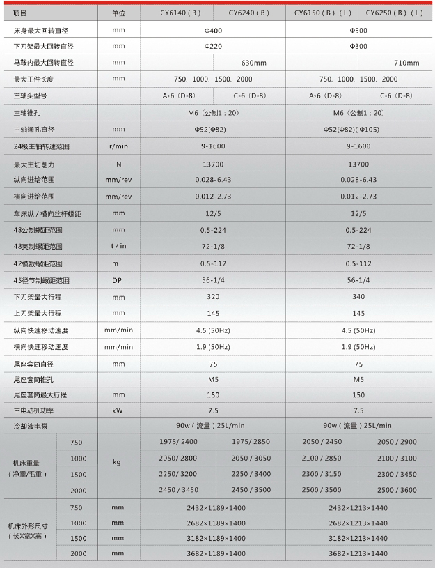 型号:CY6140(B)、CY6240(B)、CY6150(B)(L)、CY6250(B)(L)